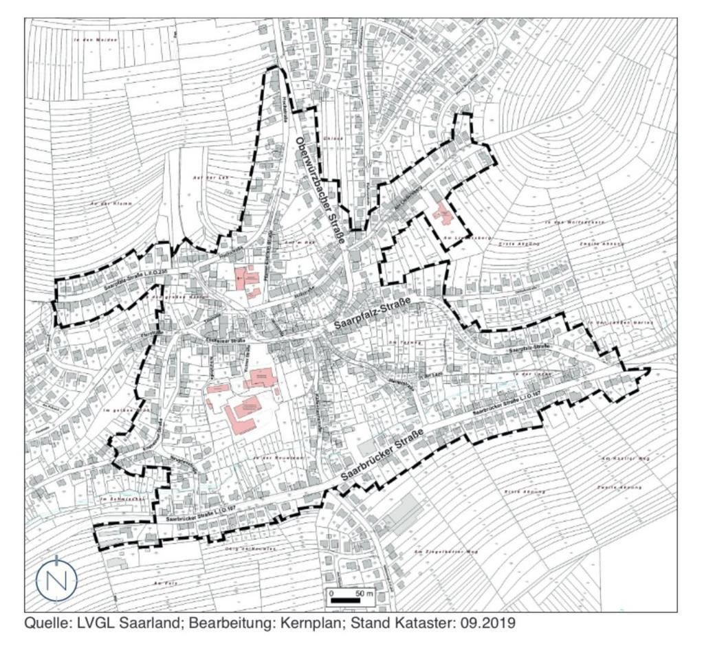 Am Liedersberg, Ensheimer Straße (teilweise), Flurstraße (teilweise), Hemelstraße, Hochstraße (teilweise), Hofstraße, In der Lach, Jahnstraße, Kallenbachstraße, Neuwiesstraße, Oberwürzbacher Straße (teilweise), Osthofenstraße (teilweise), Pfarrer - Eberlein- Straße, Saarbrücker Straße, Saarpfalz-Straße, Talstraße, Vichter - Straße