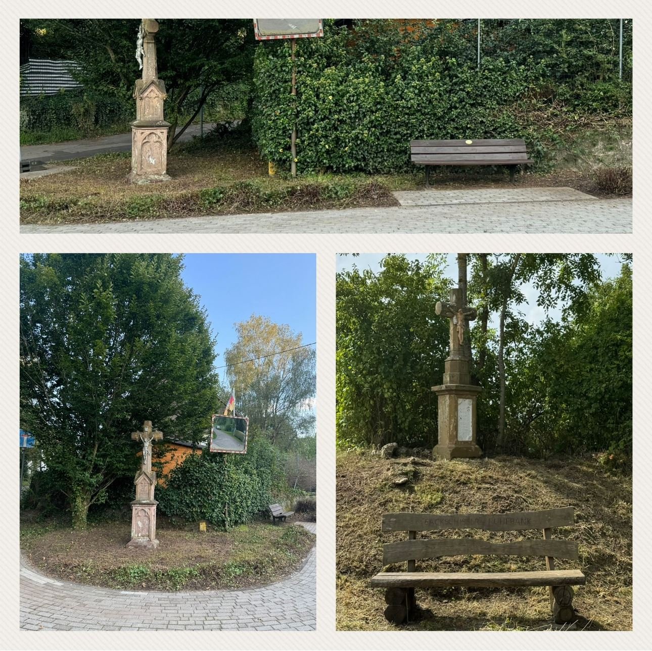 In der vergangenen Woche hat unser Ortsteilarbeiter die Ruhebank oberhalb des alten "Kaschtler Weges" und das Kreuz an der Gabelung Ziegelhütte/ Hüttenweg komplett freigeschnitten. Die beiden Stellen sind nun nochmal gut sichtbar und laden auch zum verweilen ein. In der Folge werde ich versuchen, eine Säuberung der beiden in Jahre gekommenen Wegekreuze zu erreichen. Hierzu muss wohl aber ein Steinmetz beauftragt werden.