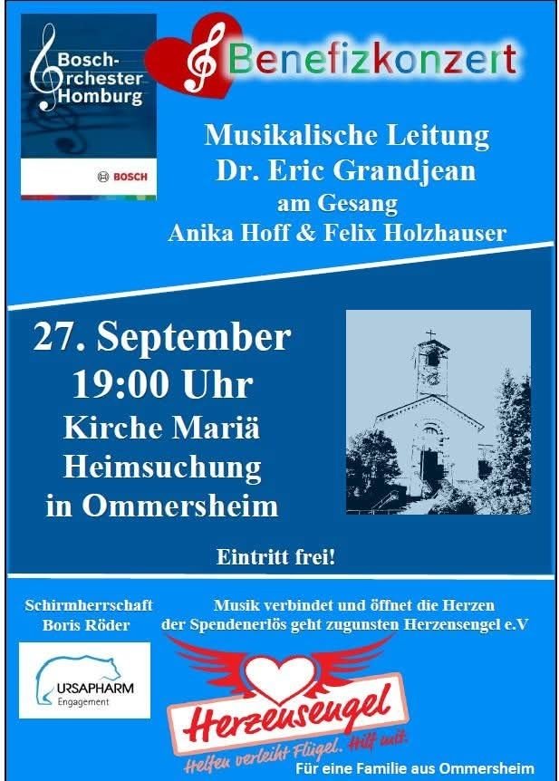 Am kommenden Samstag lädt das Bosch-Orchester Homburg unter der Leitung von Dr. Eric Grandjean zu einem Benefizkonzert in unsere Kirche Mariä Heimsuchung ein.