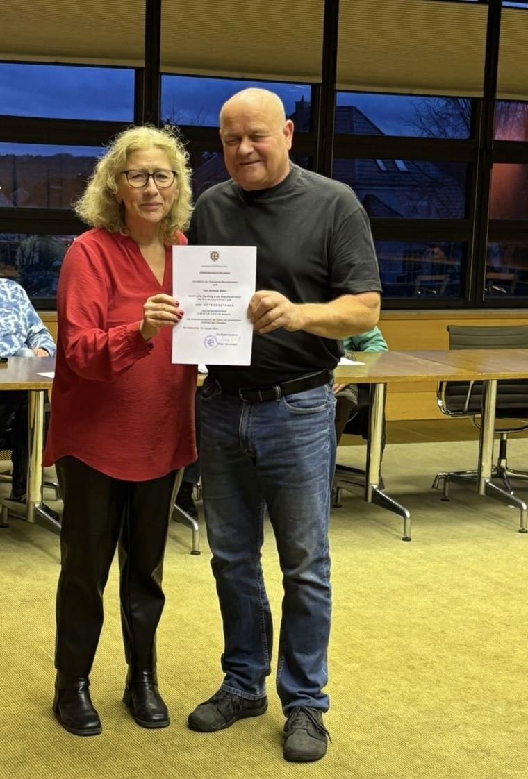 Was bei den Ortsvorstehern schon lange gesetzlich verankert war, wurde im vergangenen Oktober nun auch für die Stellvertreter neu geregelt im Saarland. Deshalb war dieser Schritt notwendig geworden. Auch unser stellvertretender Ortsvorsteher Andreas Stahn bekam aus der Hand der Bürgermeisterin seine Urkunde überreicht und wurde mit Aussprechen der Vereidigungsformel in den Stand des Ehrenbeamten gehoben. Damit ist es ihm nun zb auch gestattet hoheitliche Aufgaben, wie etwa Beglaubigen, durchzuführen.