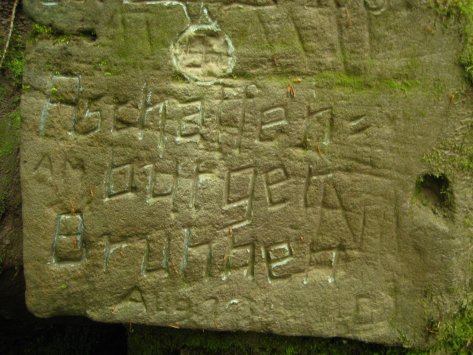 Für bleibende Erinnerung an die „Aschaffenburger“ sorgt seitdem eine kleine Quelle, die etwa in halber Höhe des Berghanges am oberen Ende des Obertales aus einem kleinen Felsspalt sprudelt. In dem darüberliegenden Felsen sind auf einer kleinen, tafelförmig gehauenen Fläche der „Reichsadler“ und eine Inschrift eingemeißelt. Leider ist die Jahreszahl 1938 nur noch teilweise lesbar. Seitdem wird diese Quelle hier im Ort „Das Aschaffenburger Brünnchen“ genannt.“
