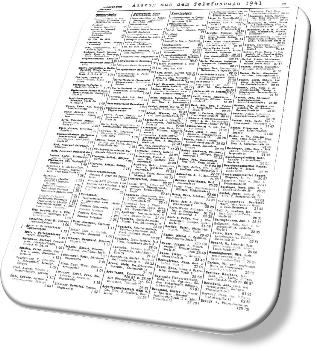 Zunächst ist unser „Bürgermeisteramt Ommersheim“ mit der Nummer 125 aufgeführt. Es folgen die Telefonanschlüsse 116 und 119 des „Gendarmerie-Posten 1, Saarbrücker Straße 11“ und des „Gendarmerie-Posten 2 (Gend.-Hptw. Christmann), Saarbrücker Straße 17“. Wie Josef Schnabel in dem Buch „Zeitzeugen Zweiter Weltkrieg – Ommersheimer Zivilpersonen erzählen“ schreibt, war Gendarmerie-Hauptwachtmeister Christmann der Leiter des damaligen Ommersheimer Gendarmerie-Postens. Er wohnte mit seiner Familie in dem Haus von „Mohre Lui“. Später meldete er sich zur Wehrmacht und kam bei der Partisanenbekämpfung an der Ostfront ums Leben.