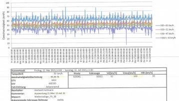 DTV: durchschnittlicher Tagesverkehr - DJV: durchschnittlicher Jahresverkehr - V(d): Durchschnittsgeschwindigkeit - V(max): maximale Geschwindigkeit