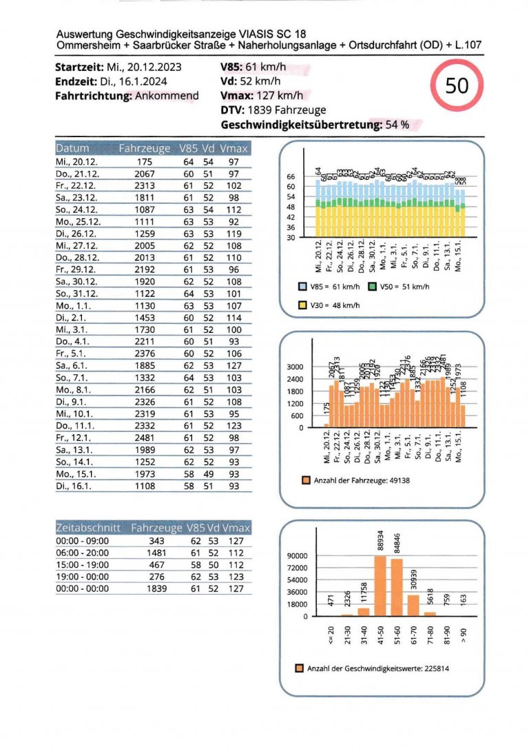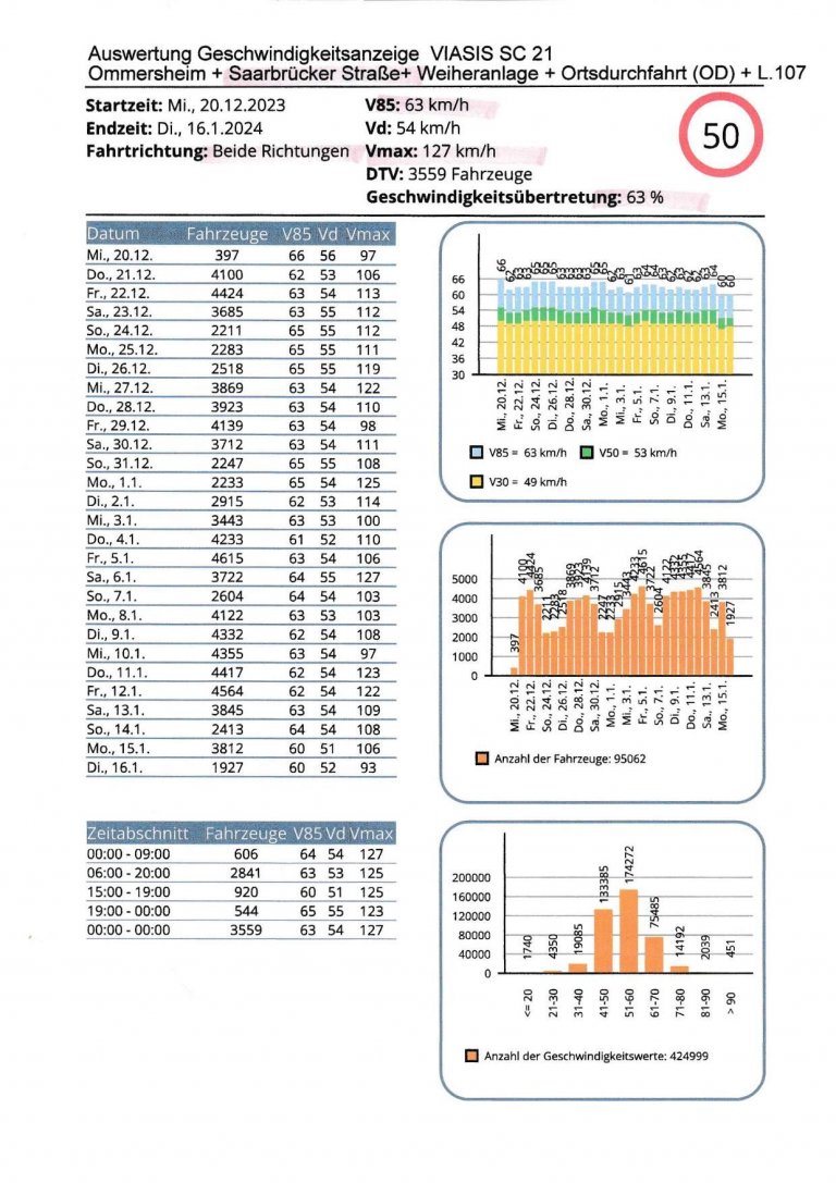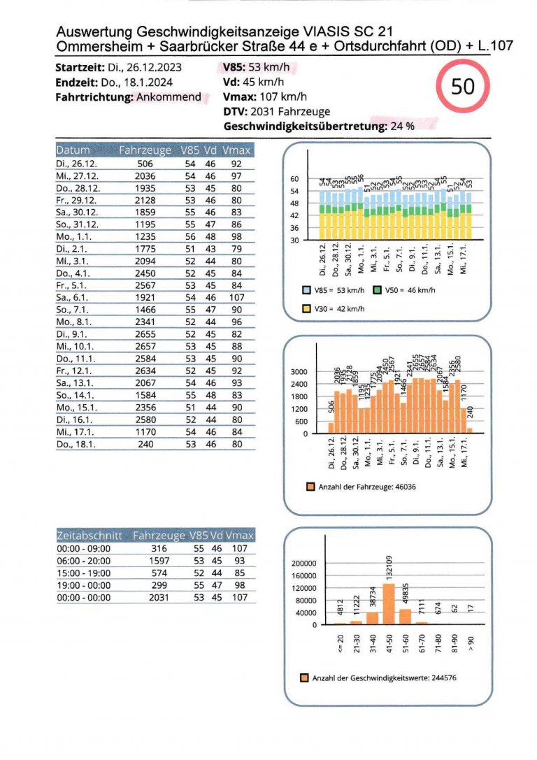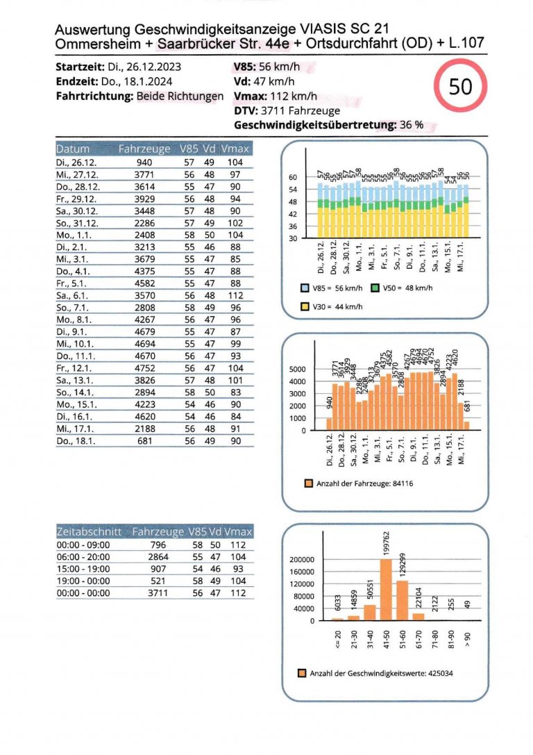Seit Monaten sind an den Ortseingängen aus Richtung Aßweiler und Ormesheim Geschwindigkeitsmessanlagen aufgehängt. Diese Geräte vom Typ viagraph wurden jetzt ausgewertet, die Ergebnisse könnt ihr hier regelmäßig nachlesen.