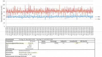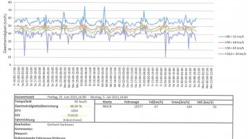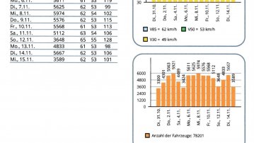 DTV: durchschnittlicher Tagesverkehr - DJV: durchschnittlicher Jahresverkehr - V(d): Durchschnittsgeschwindigkeit - V(max): maximale Geschwindigkeit
