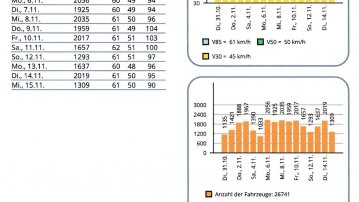 Ergebnisse Geschwindigkeitsmessung an den Ortseingängen