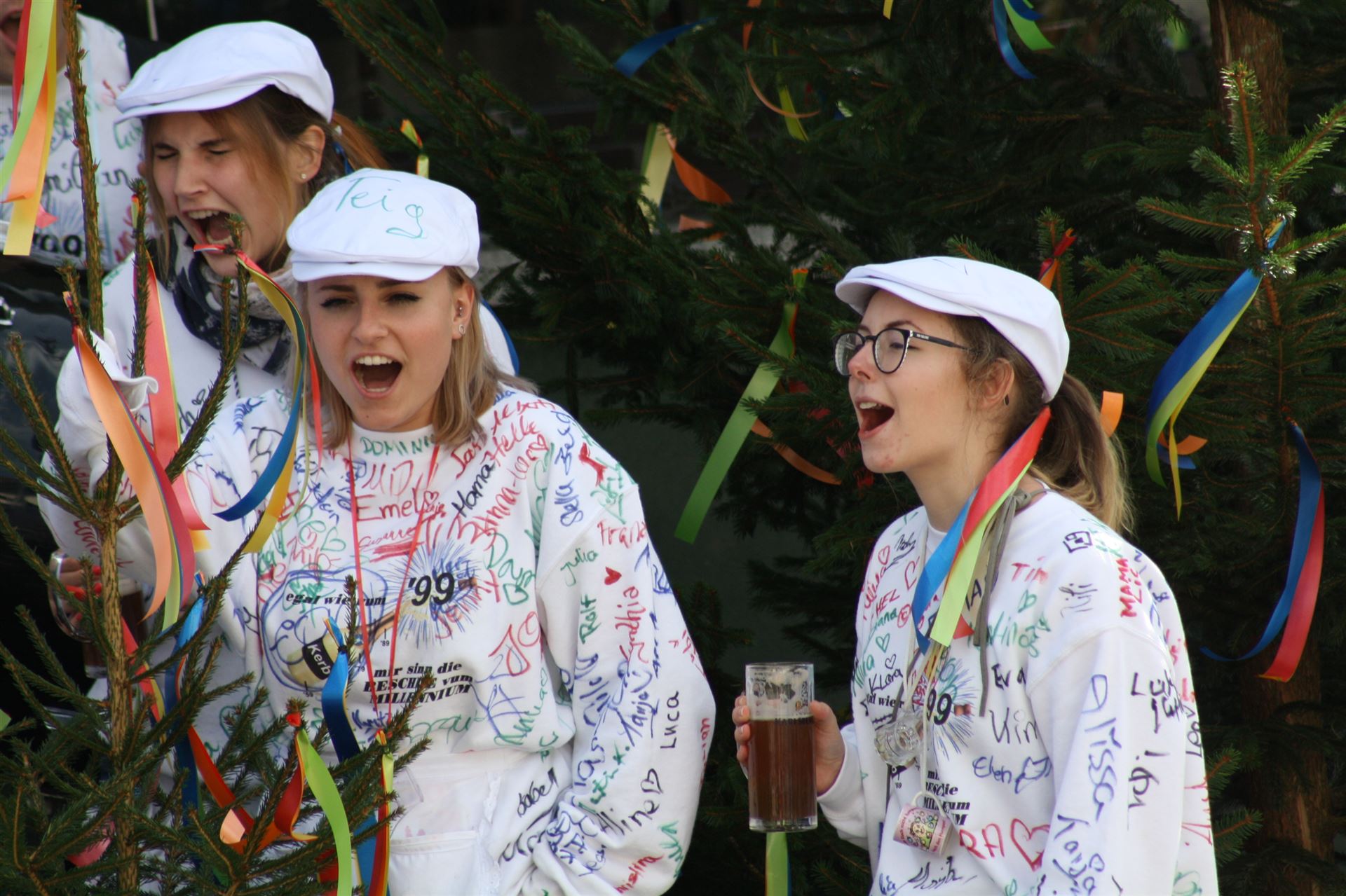 Ein mit bunten Bändern bestückter Fichtenbaum ist der ständige Begleiter der Kerwebuwe- und märe, der Sonntags in der Dorfmitte vor "Spielmanns" nach der Kerweredd' getauft wird. Der anschließende Gang zum Kerwespiel auf den Sportplatz ist selbsterklärend.