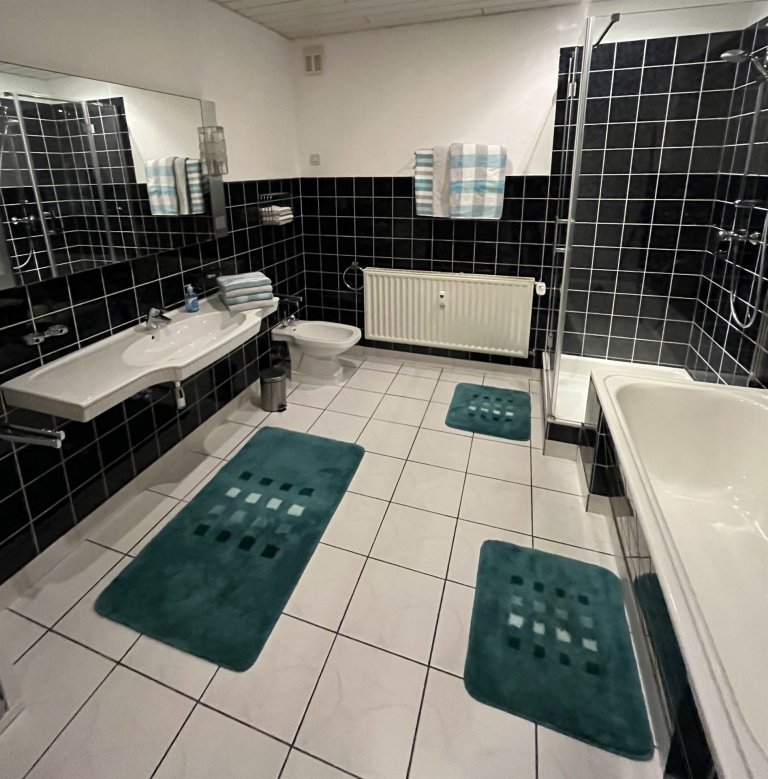 Bad: WC, Dusche und Badewanne, Föhn (inkl. Handtücher), Separates Gäste WC