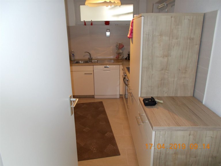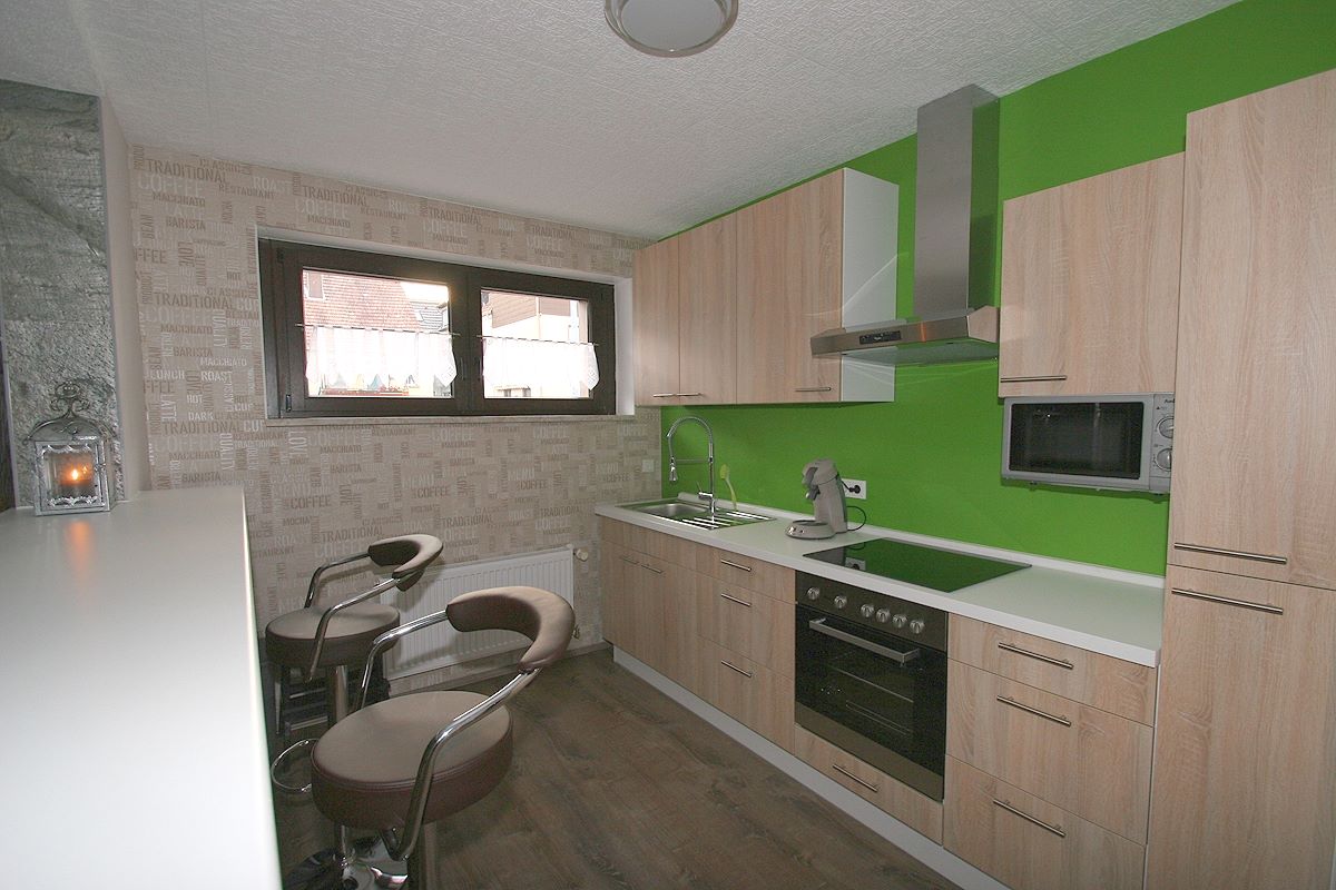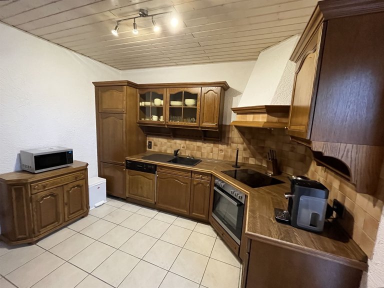 - komplett ausgestattete Einbauküche mit Spülmaschine, Backofen/E-Herd, Mikrowelle, Toaster, Pad-Kaffeemaschine, Wasserkocher und ein Kühlschrank mit Gefrierfach - Zugang zur Terrasse
