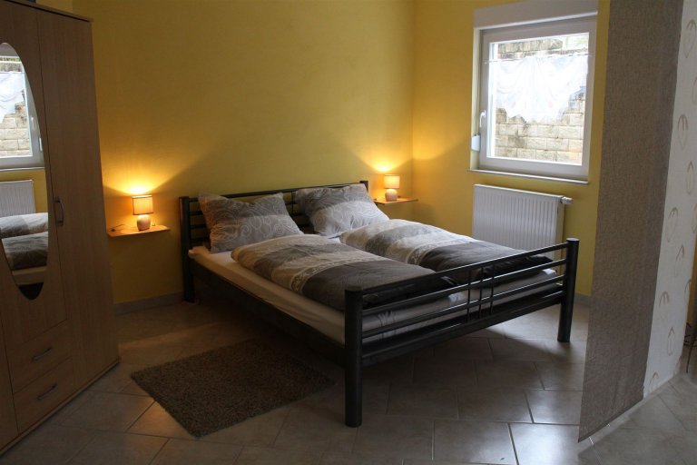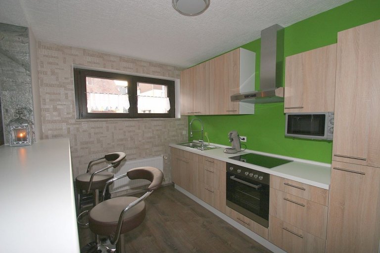 Unsere Ferienwohnung ist 70 qm groß und befindet sich im Erdgeschoss unseres Zweifamilienhauses im Ortskern von Ommersheim.