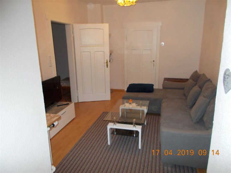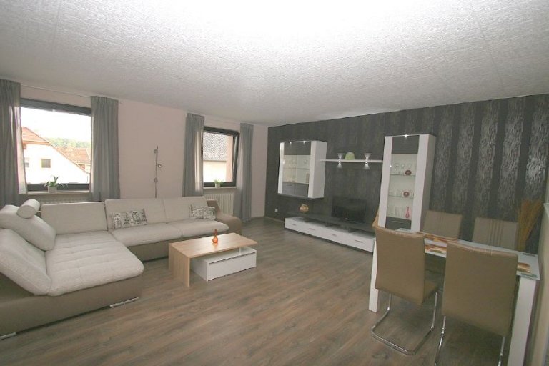 - großes Ess-/ Wohnzimmer mit Schlafcouch 160 x 200 cm , SAT TV und WLAN, Esstisch mit 4 Stühlen und Kommode