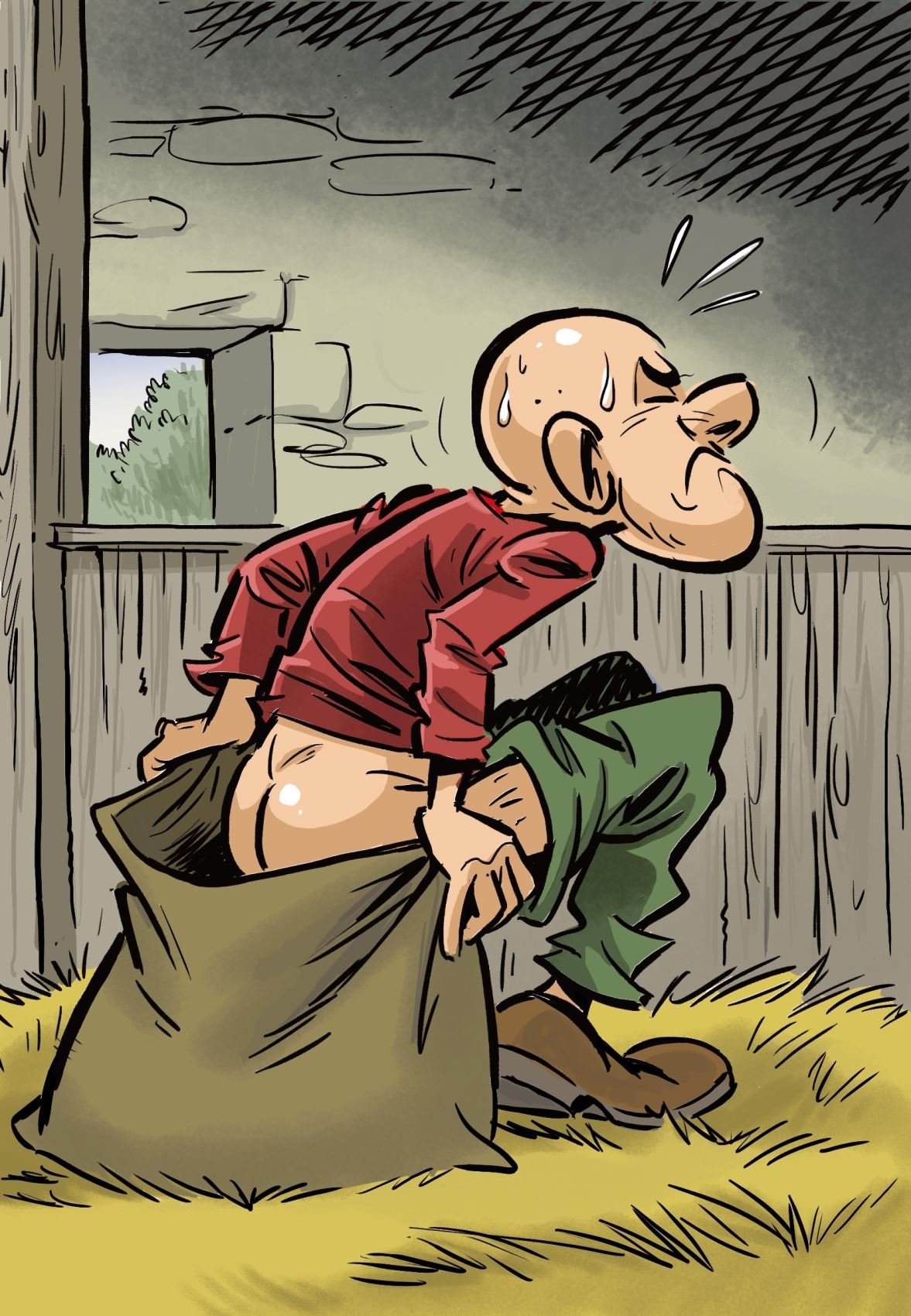 Und so kam es wie es kommen musste, als der Oberwürzbacher wieder einmal zu einem heimlichen Stelldichein bei seiner Liebsten weilte, hinterließen die Burschen im Mehlsack des Jünglings, ein Zeichen ihrer Wertschätzung, in höchst anrüchiger Form. Noch liebestrunken zog der Jüngling spät am Abend nach Hause und bemerkte nicht die duftende Fracht, die er auf seinem Rücken hatte. Erst zuhause, als sein Vater, angelockt von der neuen Duftnote des Mehls, dieses in Augenschein nahm, fiel es auch dem Jüngling wie Schuppen von den Augen. Die Ommersheimer Burschen hatten ihm in den Sack geschissen! Sein Wehklagen war laut und viele Leute in Oberwürzbach konnten ihn noch lange vernehmen mit seinen Worten „ Die Ommersheimer hann mir in de Sack geschiss, die Ommersheimer, die Sackschisser, die..“