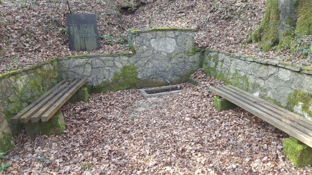 Für bleibende Erinnerung an die „Aschaffenburger“ sorgt seitdem eine kleine Quelle, die etwa in halber Höhe des Berghanges am oberen Ende des Obertales aus einem kleinen Felsspalt sprudelt. In dem darüberliegenden Felsen sind auf einer kleinen, tafelförmig gehauenen Fläche der „Reichsadler“ und eine Inschrift eingemeißelt. Leider ist die Jahreszahl 1938 nur noch teilweise lesbar. Seitdem wird diese Quelle hier im Ort „Das Aschaffenburger Brünnchen“ genannt.“