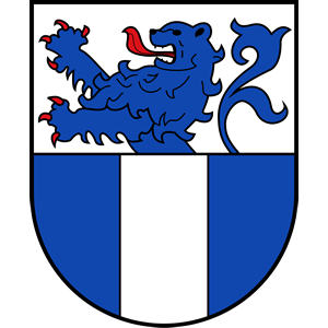 oben in Silber ein wachsender rotbewehrter und rotbezungter blauer Löwe,