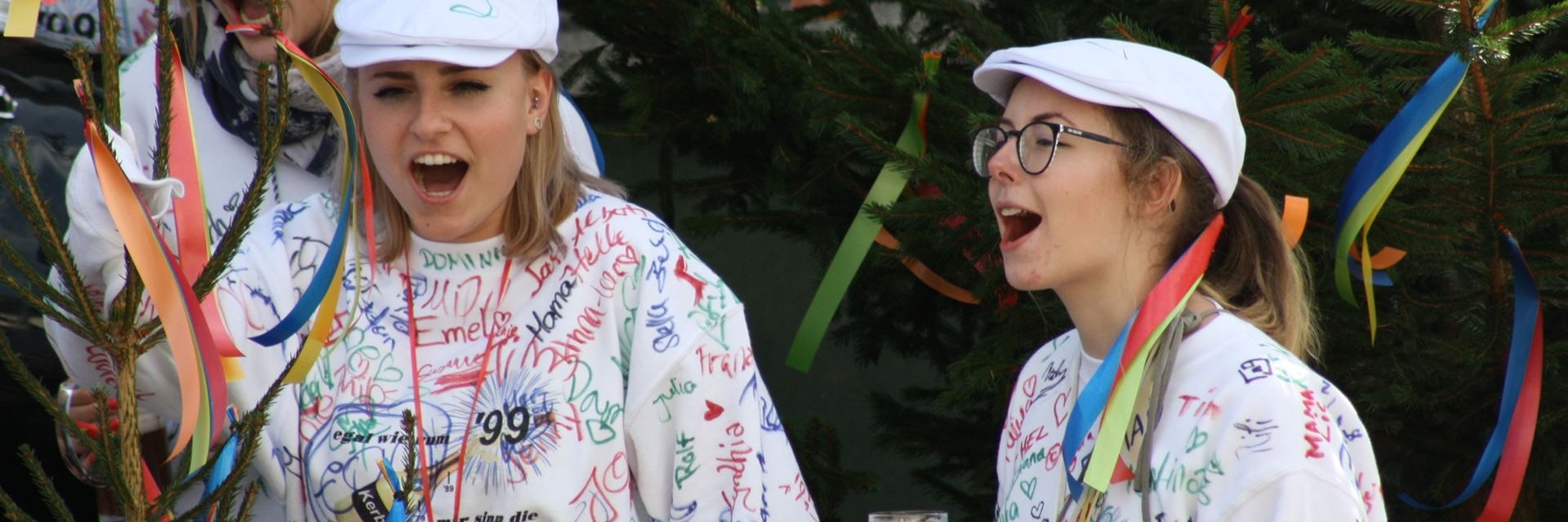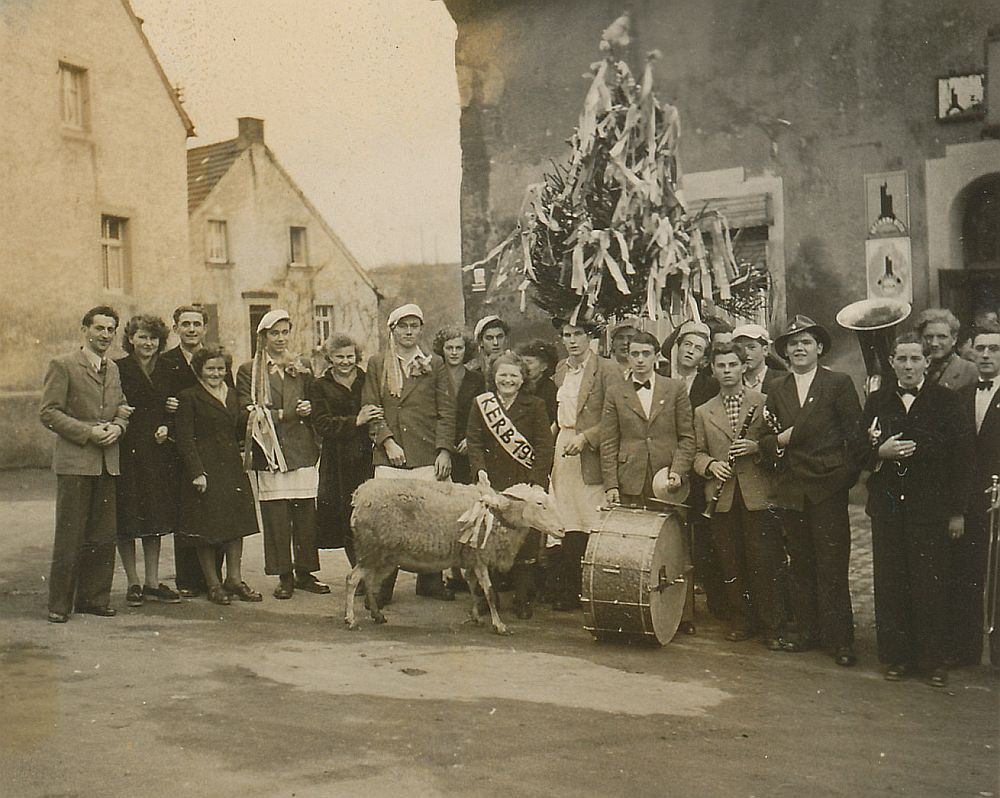 Ein mit bunten Bändern bestückter Fichtenbaum ist der ständige Begleiter der Kerwebuwe- und märe, der Sonntags in der Dorfmitte vor "Spielmanns" nach der Kerweredd' getauft wird. Der anschließende Gang zum Kerwespiel auf den Sportplatz ist selbsterklärend.