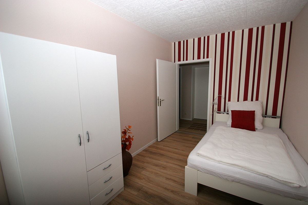 Schlafzimmer 3: Kleines Einzelzimmer, mit Bett (inkl. Bettwäsche) und Schrank